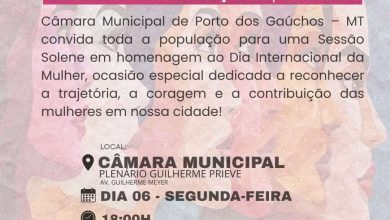 A Câmara Municipal de Porto dos Gaúchos realizará, na próxima segunda-feira, 6 de abril, uma sessão solene em homenagem a…