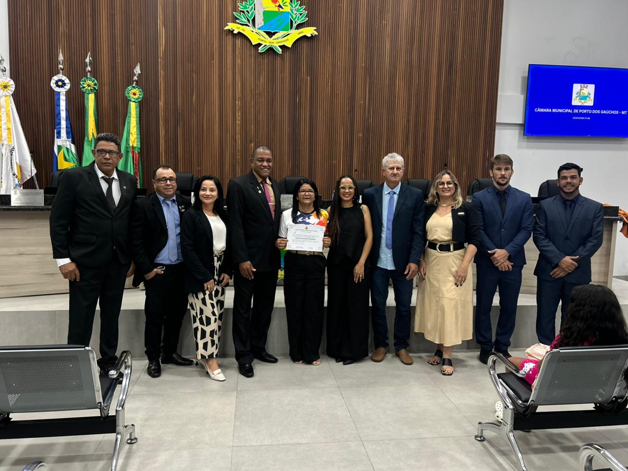 A professora da rede municipal de ensino de Porto dos Gaúchos, Lenir dos Santos do Nascimento, conhecida como “Nika”, foi homenageada pela Câmara de Vereadores do município com uma moção de aplausos e reconhecimento. A entrega ocorreu na noite de segunda-feira (23), durante sessão ordinária realizada no plenário da Casa de Leis.