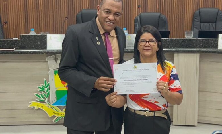 A professora da rede municipal de ensino de Porto dos Gaúchos, Lenir dos Santos do Nascimento, conhecida como “Nika”, foi homenageada pela Câmara de Vereadores do município com uma moção de aplausos e reconhecimento. A entrega ocorreu na noite de segunda-feira (23), durante sessão ordinária realizada no plenário da Casa de Leis.