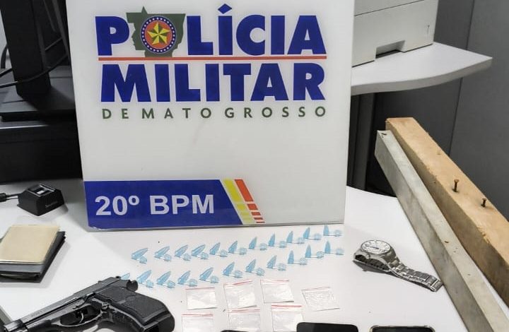 No imóvel, a PM apreendeu: 1 simulacro de arma de fogo tipo pistola airsoft, marca Rossi; 6 envelopes plásticos com substância análoga à cocaína; 22 pinos plásticos vazios; 1 balança de precisão; 3 celulares; 1 relógio; 1 pedaço de madeira e 1 pedaço de metal, que seriam usados para agredir as vítimas.